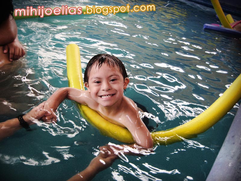 El viernes ya llegó con la idea de entrar, y de volada al agua con su flotador, claro, todo se volvió caos, cuando el maestro lo alejo de mí, y le dijo que si quería ir con mamá tenía que mover las piernas, así que Elías lloró y lloró, mientras el maestro trataba de hacer que lo escuchara mientras le decía que llorando no iba a lograr nada! que moviera los pies.