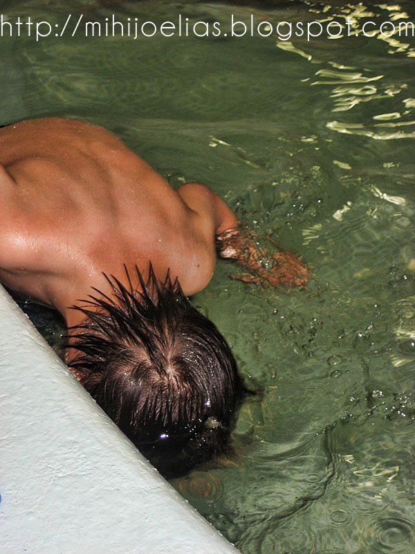 Elías no quería meter la cabeza, así que le dije “cierra la boca Elías” y lo metí .. ops! otra vez un pequeño empujón, pero después de eso, se la paso “mira mamá… 1…2…3…..”