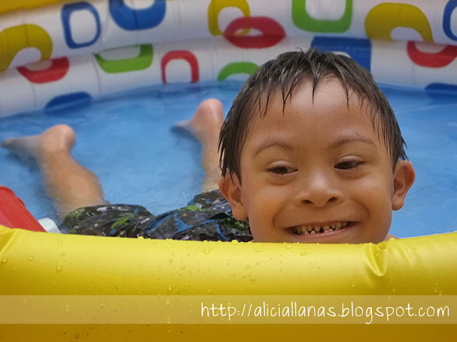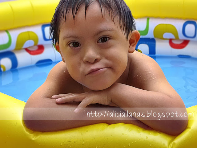 Y es que el calor esta tan horrible que no dan ganas de salir a ningun lado, así que le compramos una alberquita para que mate un poco el tiempo y el calor, disfrutando el agua