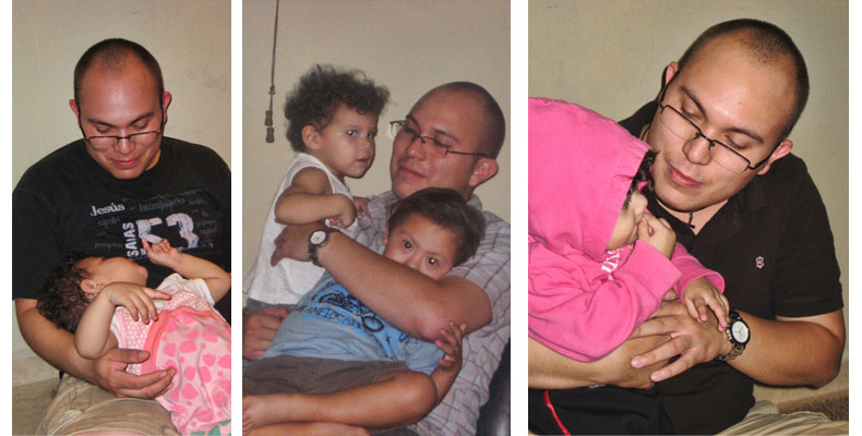 Cuando le comencé a hablar de la adopción, el me decía que no, el tenía sus propias dudas/preguntas/pensamientos, uno de ellos y muy común es que el no creería poder querer a un hijo que no fuera suyo. Yo como quiera le insistía, le hablaba, hasta que lo harte, y el no quizo saber nada más. (otoño del 2008)