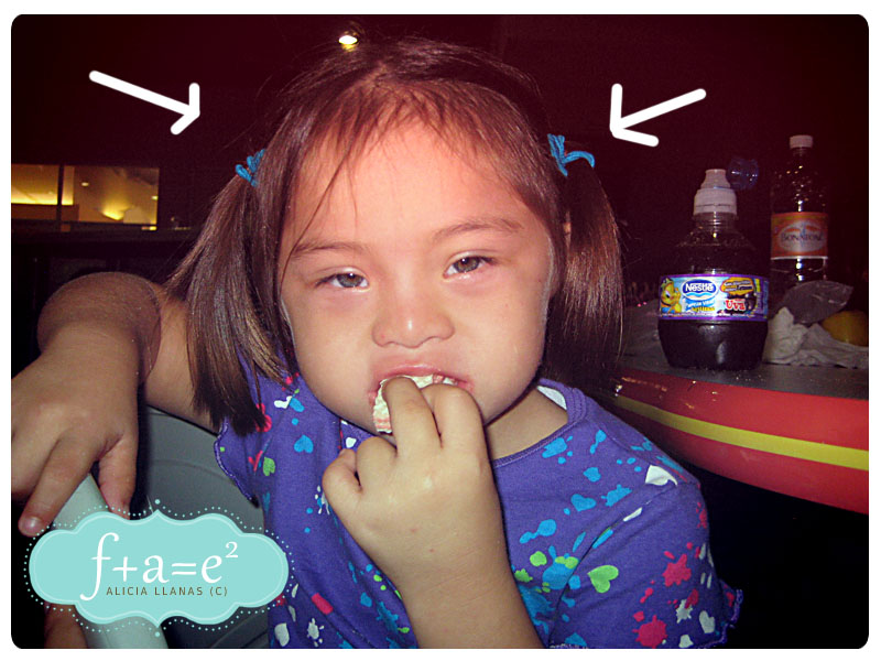 La segunda visita con Eva a la casa hogar traía el cabello suelto, y pobre pero yo creo que ese día no la habían bañado, o no se pero el cabello lo traía muy feito, yo traía una liga del cabello e intente hacerle un chongo, pero en mi defensa realmente lo traía muy enredado, y pues yo no traía un peine o cepillo. Fiuff buena excusa no?
