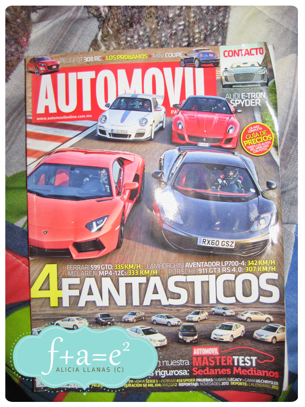 Hace unos días estábamos en una tienda y mientras esperábamos en la fila para pagar, se detuvo en frente de las revistas y agarro una y se iba a sentar en el piso para verla, cuando Felipe le dice que si la compramos Elías dice que SI! yo la verdad no quería traerla a casa, pero Felipe insistió por la simple razón de que Elías la había escogido y que el nunca lo había visto así, y que bueno que iba Felipe con nosotros porque si hubiera sido otro día le hubiera dicho a Elías que la dejará ahí, y si vieran lo feliz que anda con su revista para todos lados. Y como en la portada salen cuatro carros, el dice que uno es su papá, otro su mamá, otro Eva y otro el