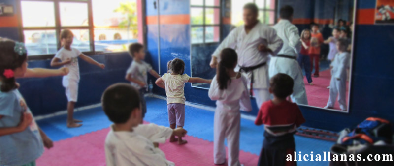 Así que Eva esta en karate, y le esta gustando mucho, lo que me ha sorprendido es que dentro de la clase se ha portado muy bien, esperaba que realmente el maestro batallara mucho con ella, cosa que no ha sucedido, es un salón relativamente pequeño para la cantidad de niños que van, pero aun así Eva ha estado muy atenta,  y hasta ahora no ha molestado a nadie.
