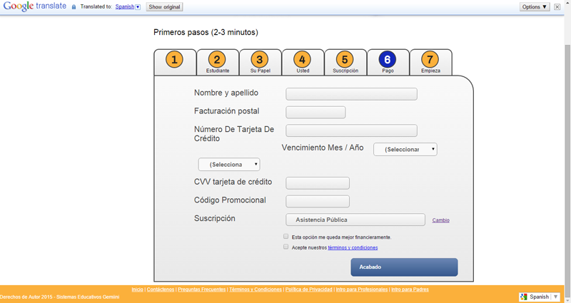 Aquí es donde debes de llenar tus datos de pago. NECESITAS una tarjeta de crédito