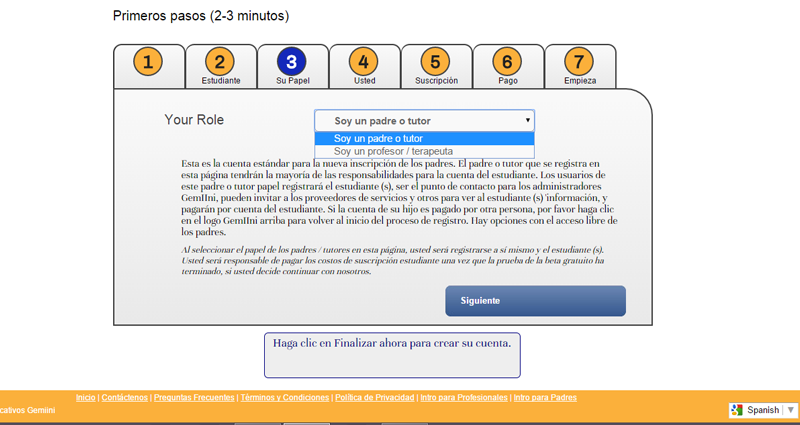 La otra opción que sale es para cuando tienes una cuenta como la tengo yo y que quiero agregar a un estudiante nuevo con mi cuenta, por ejemplo en mi caso que tengo dos hijos con sìndrome de Down ahì lo harìa para agregar una cuenta separada para Eva (con costo aparte, cada “estudiante” tiene un costo individual) o para los que son terapeutas o maestros que quisieran agregar a más alumnos .